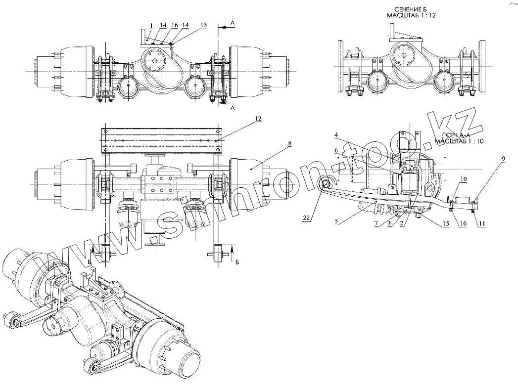 Каталог запасных частей к технике: Тонар-6428. Мост средний с рессорами