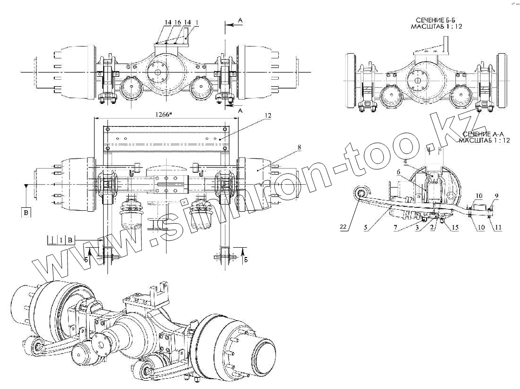 Каталог запасных частей к технике: Тонар-6428. Мост задний с рессорами