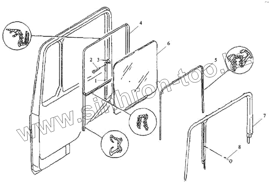 Каталог запасных частей к технике: Тонар-6428. Окно правой двери