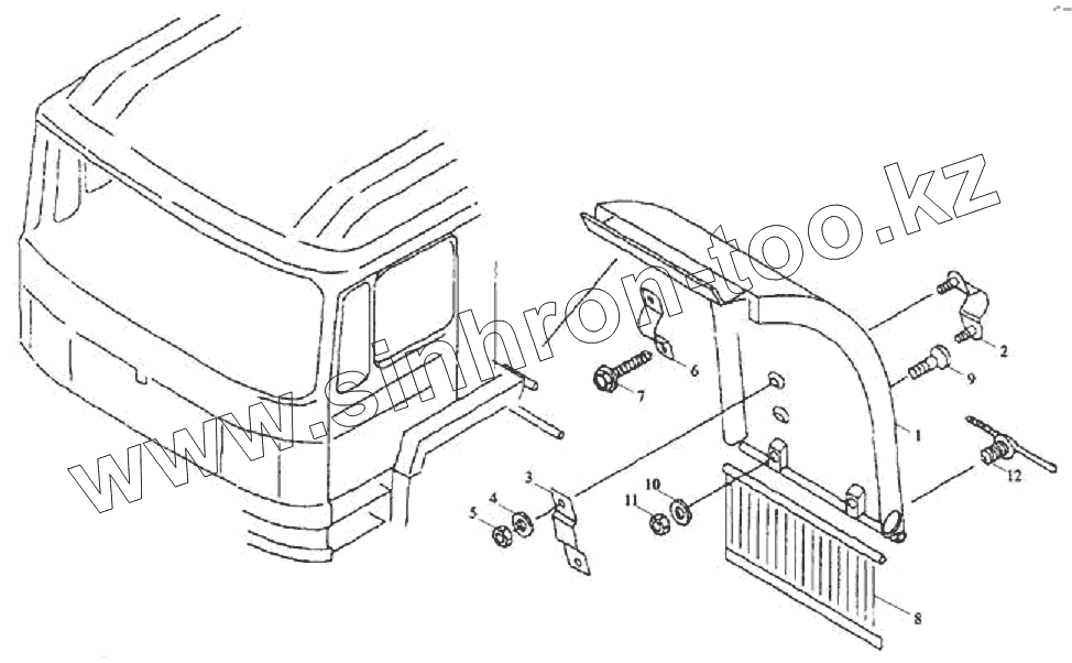 Каталог запасных частей к технике: Тонар-6428. Заднее крыло кабины левое
