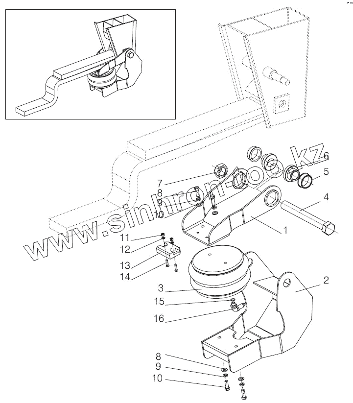 Каталог запасных частей к технике: Тонар-95231. Механизм подъема оси