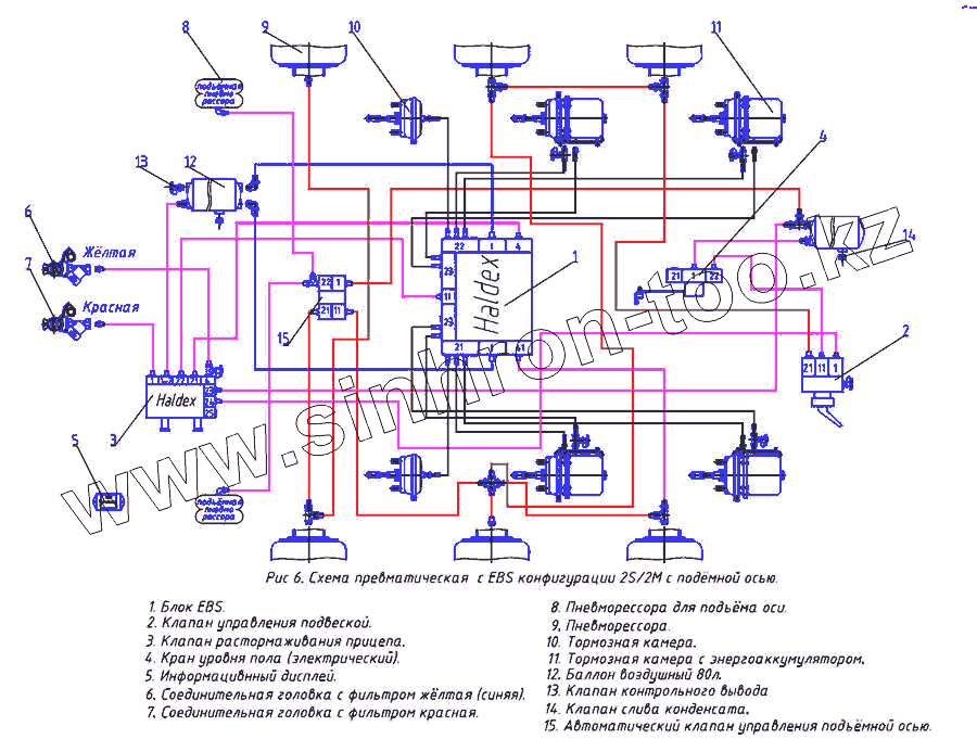 Каталог запасных частей к технике: Тонар-95231. Схема пневматическая Haldex