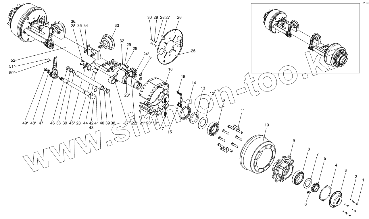 Каталог запасных частей к технике: Тонар-95234. Ось с тормозами