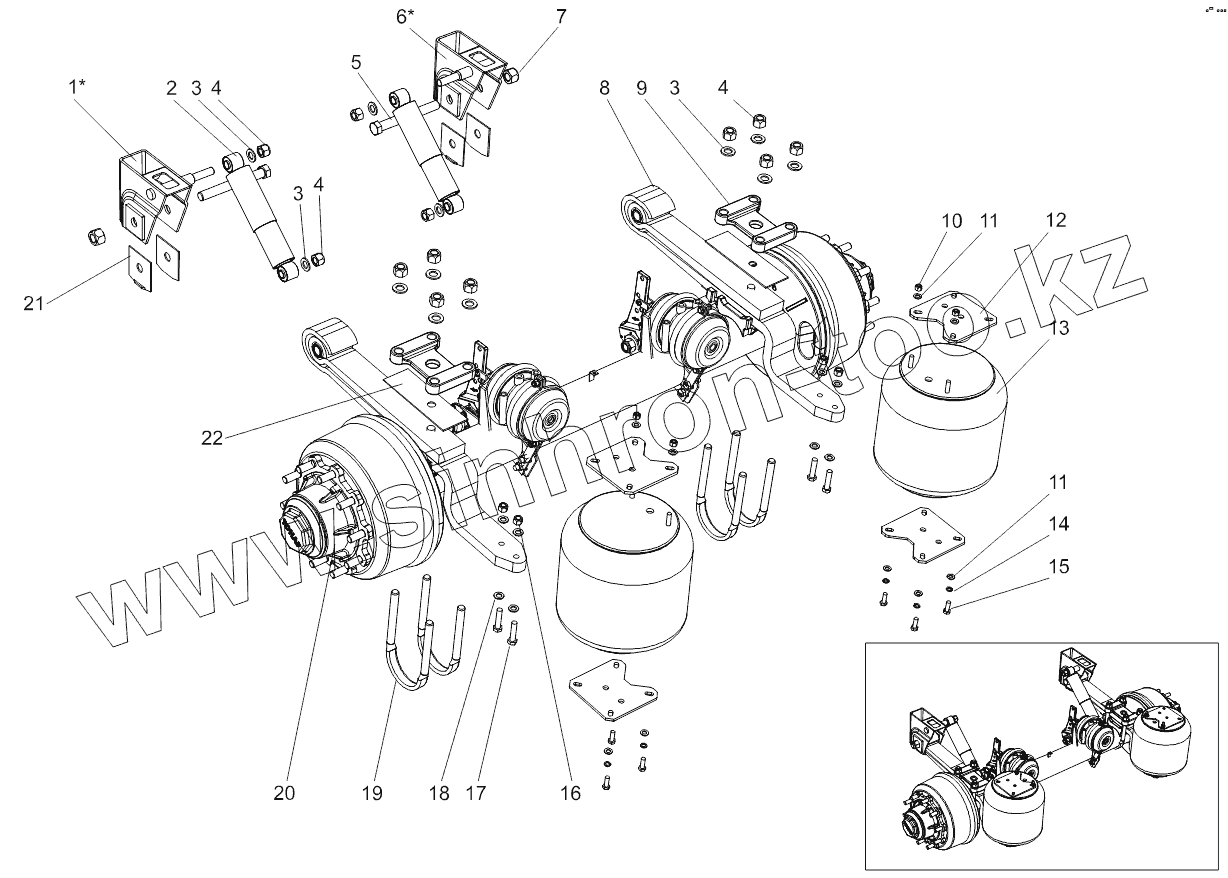 | 20 | 9042-2410016-10 | Ось с тормозами средняя | |