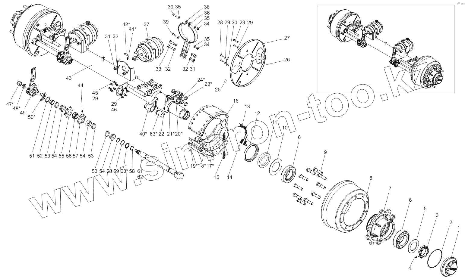 Каталог запасных частей к технике: Тонар-95234. Ось с тормозами 9523-2410016-10