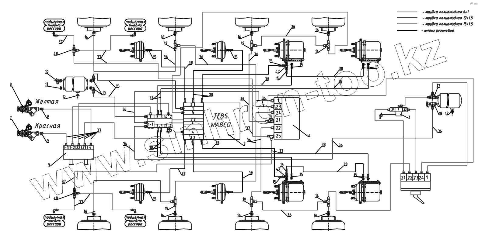 Каталог запасных частей к технике: Тонар-95234. Схема пневматическая Wabco