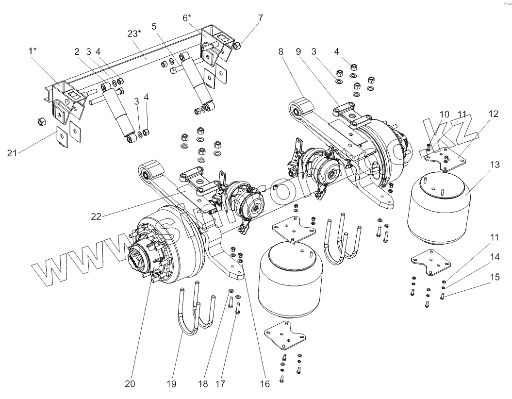 | 20 | 95235-2410012-10 | Ось с тормозами средняя | |