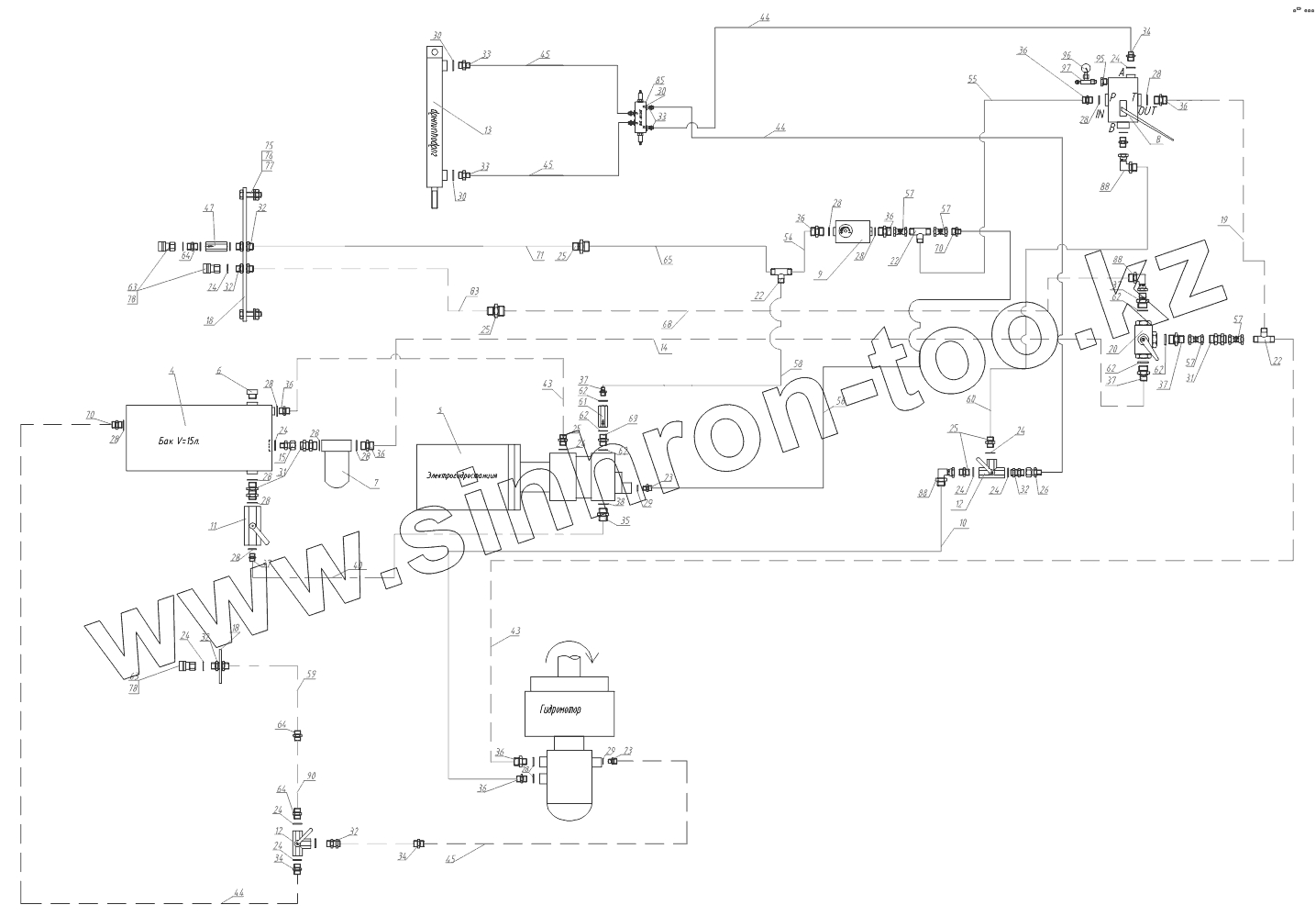 Каталог запасных частей к технике: Тонар-95235. Схема гидравлическая (сдвоенный привод)