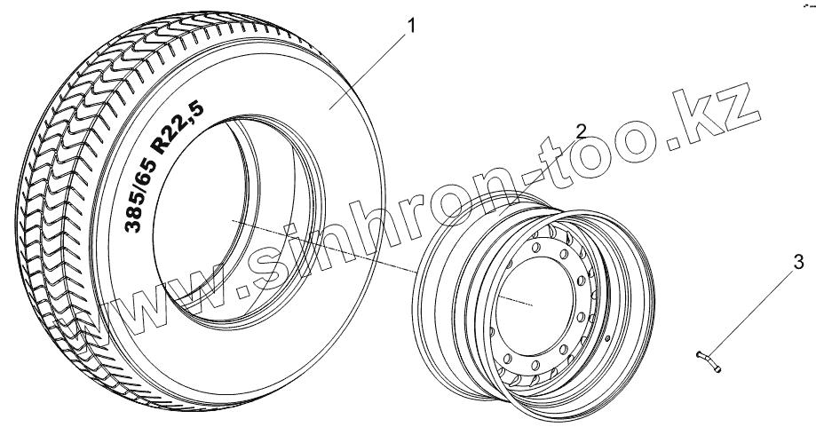 Каталог запасных частей к технике: Тонар-9523 (вариант). Колесо в сборе 9746-3107010