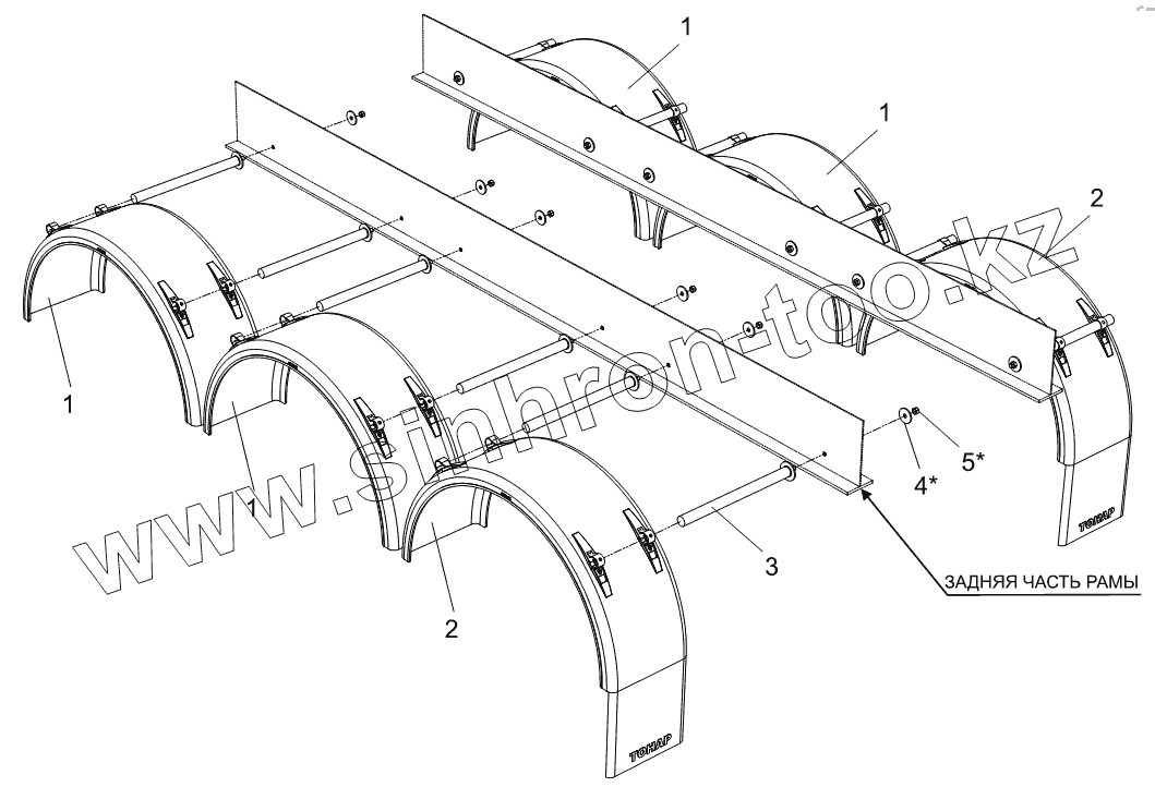 Каталог запасных частей к технике: Тонар-9523 (вариант). Установка крыльев 9523-3102000