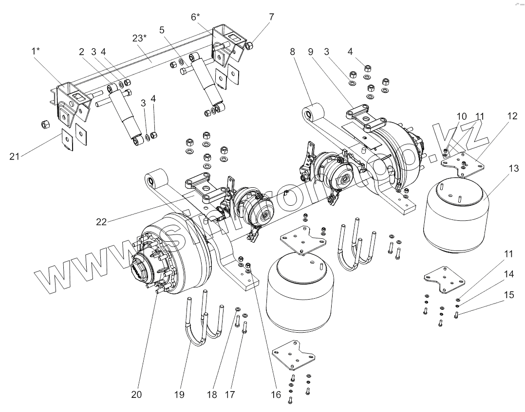 | 20 | 9042-2410016-10 | Ось с тормозами средняя | |