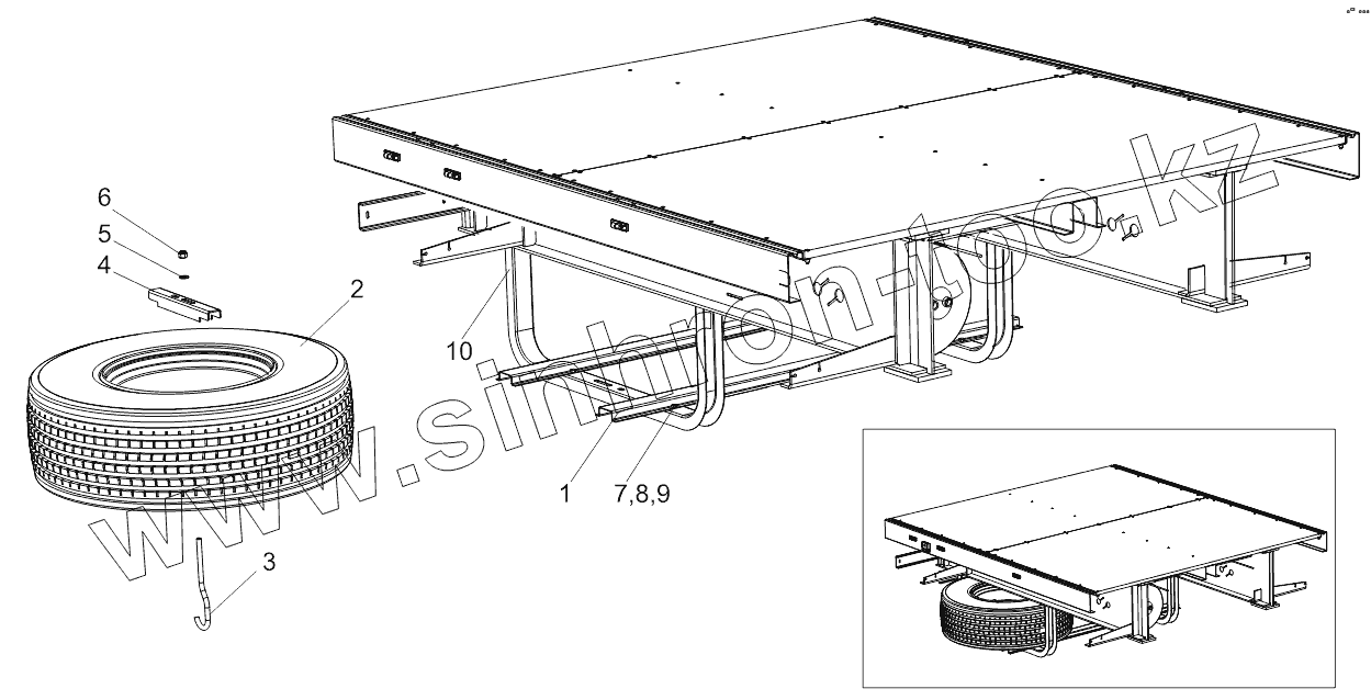 Каталог запасных частей к технике: Тонар-97461. Установка запасного колеса