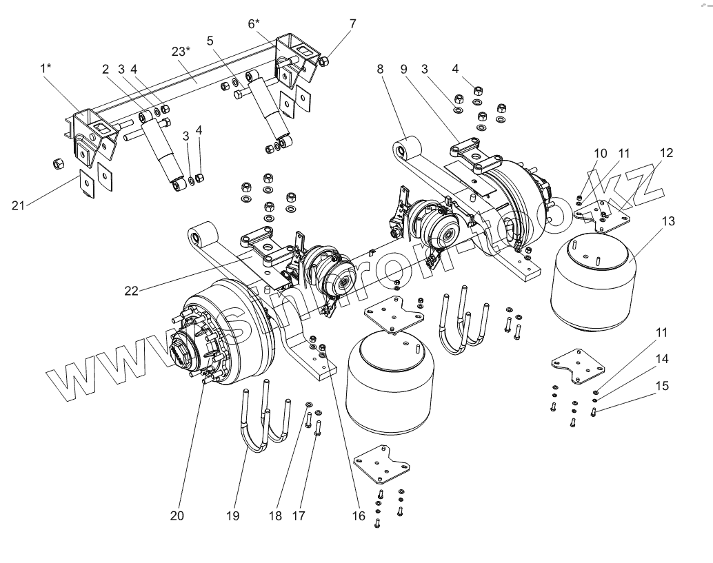 | 20 | 9042-2410016-10 | Ось с тормозами средняя | |