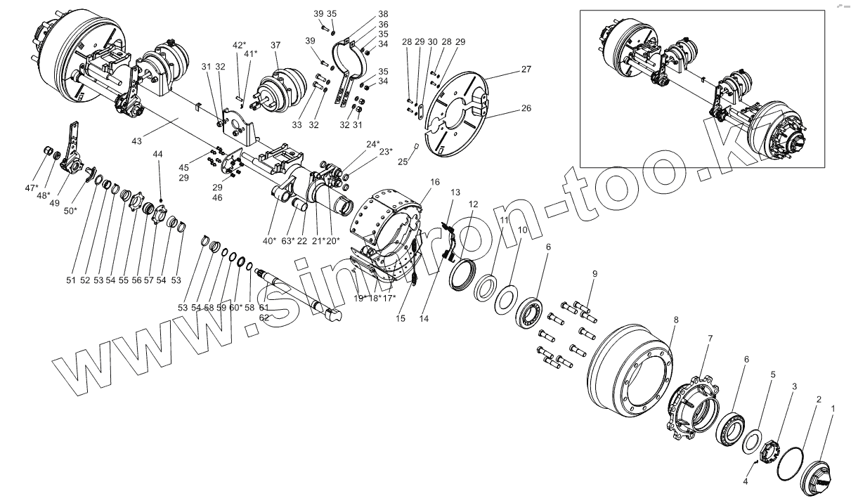 Каталог запасных частей к технике: Тонар-97461. Ось с тормозами 9042-2410016-10