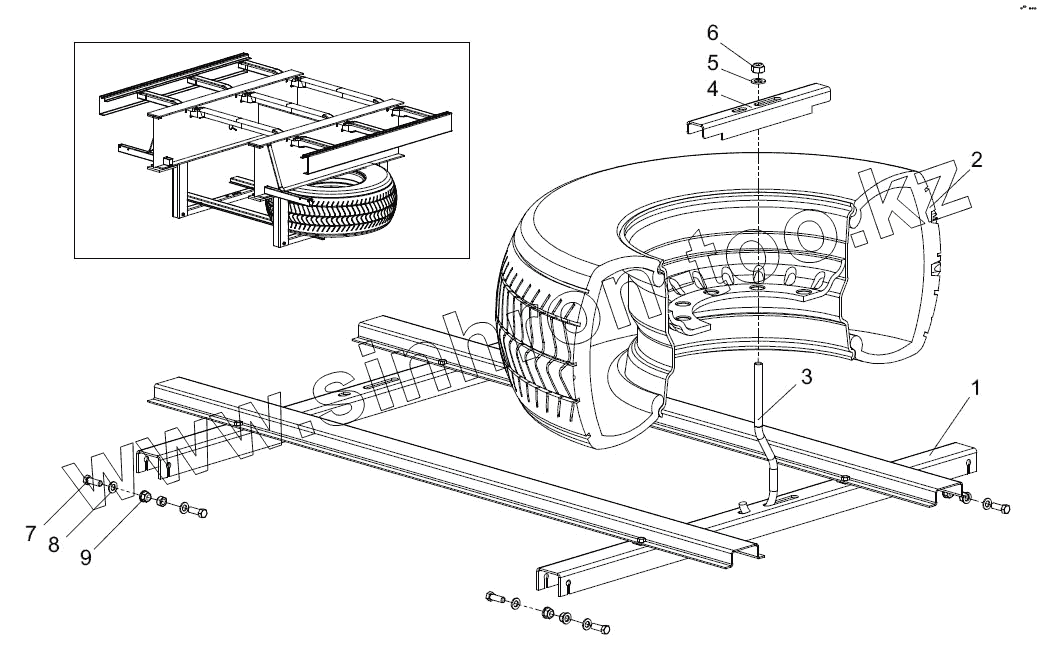 Каталог запасных частей к технике: Тонар-97461. Установка запасного колеса 9746-3105500