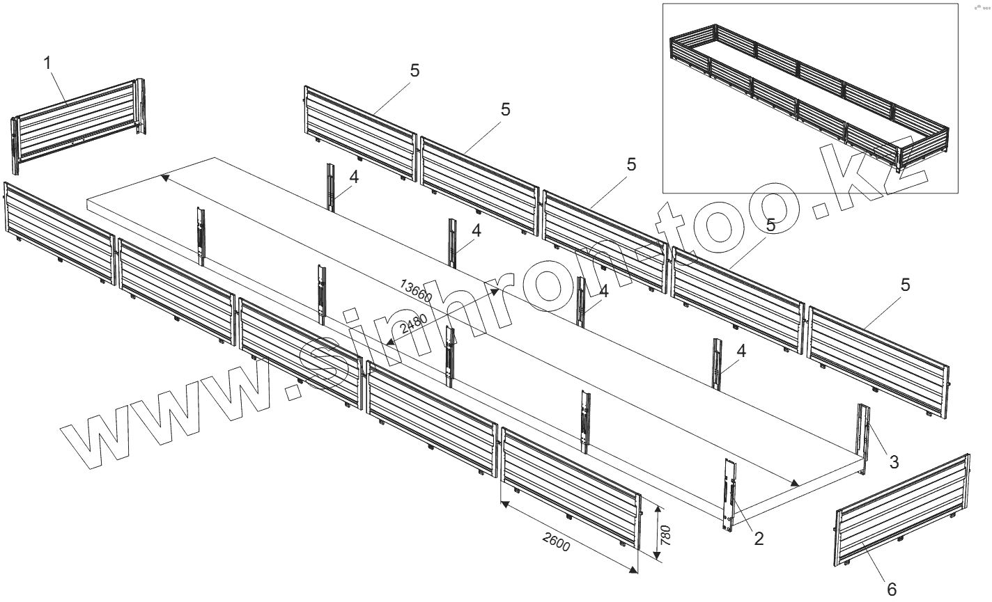 Схема каркаса тента для 97461-0000040-20, L=13,6м.