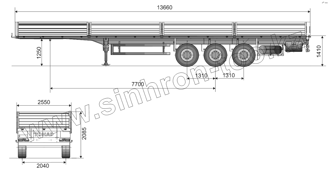 Каталог запасных частей к технике: Тонар-9746. Общий вид полуприцепа модели 97461-0000020-60