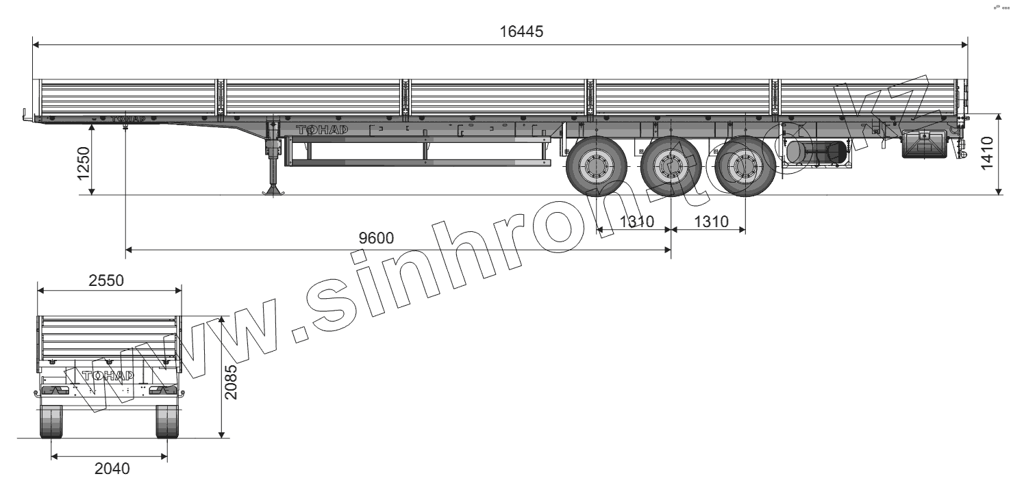 Каталог запасных частей к технике: Тонар-9746. Общий вид полуприцепа модели 97461Д-0000070