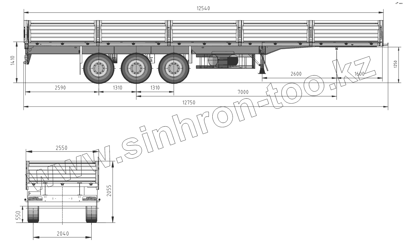 Каталог запасных частей к технике: Тонар-9746. Общий вид полуприцепа модели 97461К-0000020