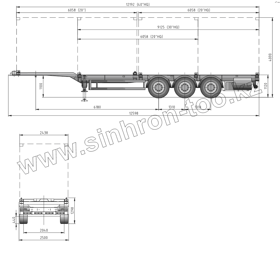 Каталог запасных частей к технике: Тонар-9746. Общий вид полуприцепа модели 974623-0000020
