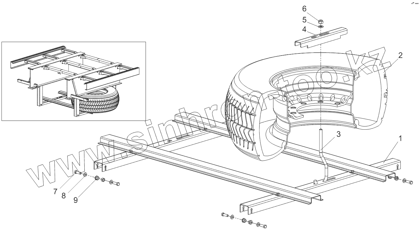 Каталог запасных частей к технике: Тонар-9746. Установка запасного колеса 9746-3105500