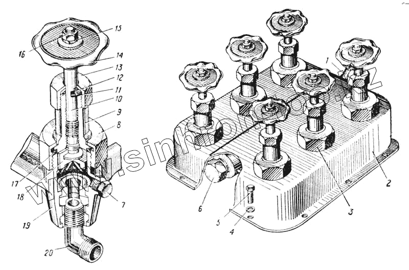 Каталог запасных частей к технике: УралАЗ УРАЛ-375. Блок шинных кранов (Рис. 128)