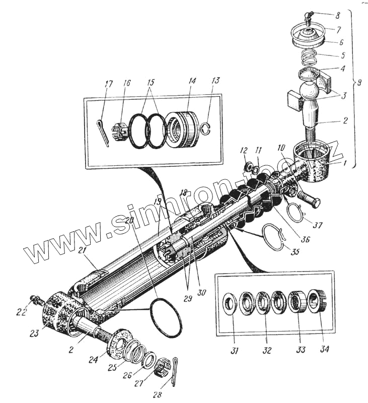 Цилиндр гидроусилителя с крышкой и втулкой в сборе