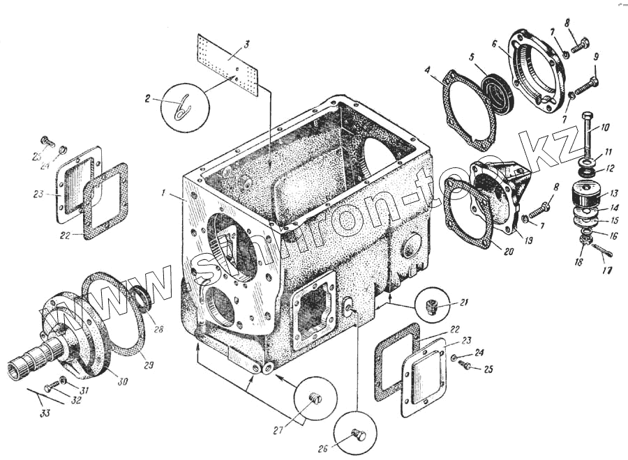 Каталог запасных частей к технике: УралАЗ УРАЛ-375. Картер коробки передач (Рис. 40)