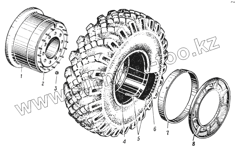 Каталог запасных частей к технике: УралАЗ УРАЛ-375. Колесо автомобиля Урал-377 (Рис. 76)