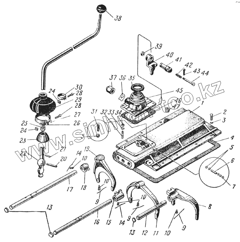 Каталог запасных частей к технике: УралАЗ УРАЛ-375. Механизм переключения передач (Рис. 43)