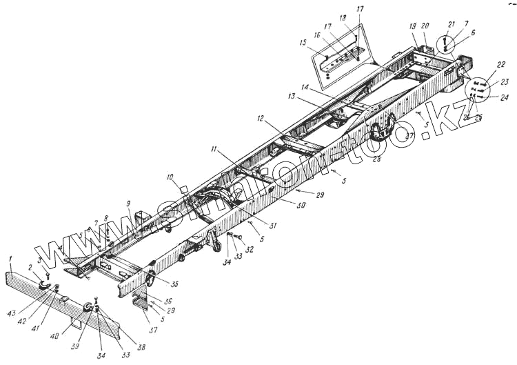 Каталог запасных частей к технике: УралАЗ УРАЛ-375. Рама автомобиля Урал-375Д (Рис. 61)