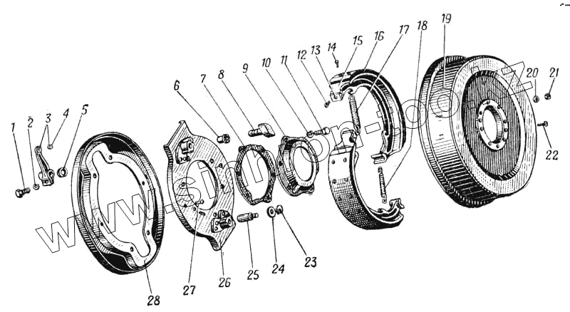 Каталог запасных частей к технике: УралАЗ УРАЛ-375. Ручной тормоз (Рис. 96)