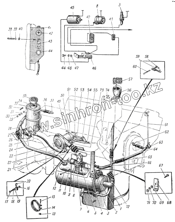 Каталог запасных частей к технике: УралАЗ УРАЛ-375. Схема системы пускового подогрева (Рис. 17)