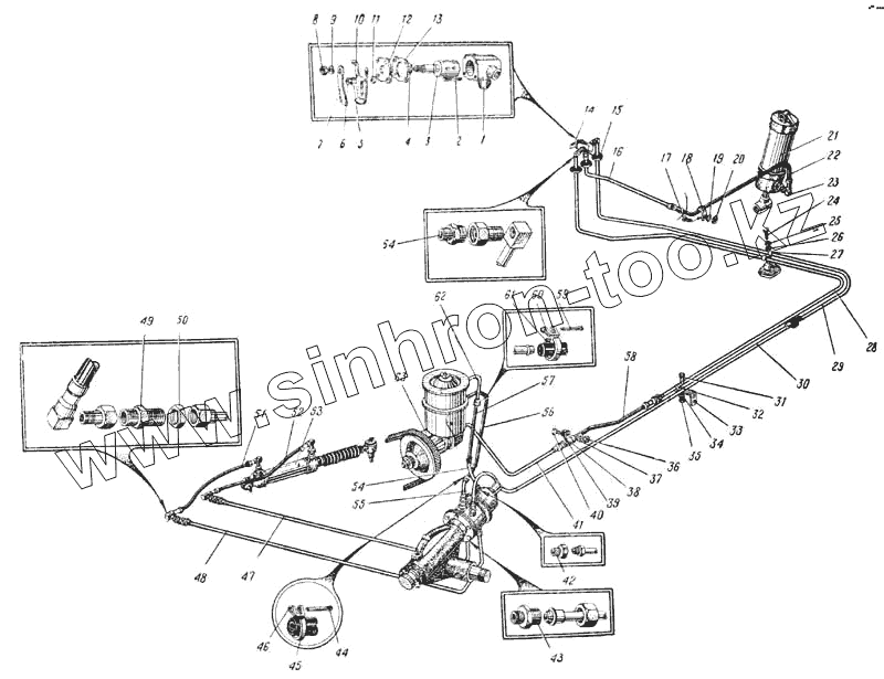 Каталог запасных частей к технике: УралАЗ УРАЛ-375. Схема системы рулевого управления (Рис. 89)