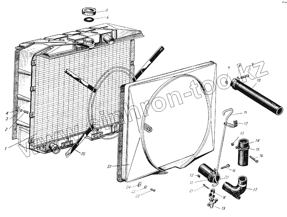 Каталог запасных частей к технике: УралАЗ УРАЛ-375. Система охлаждения (Рис. 34)
