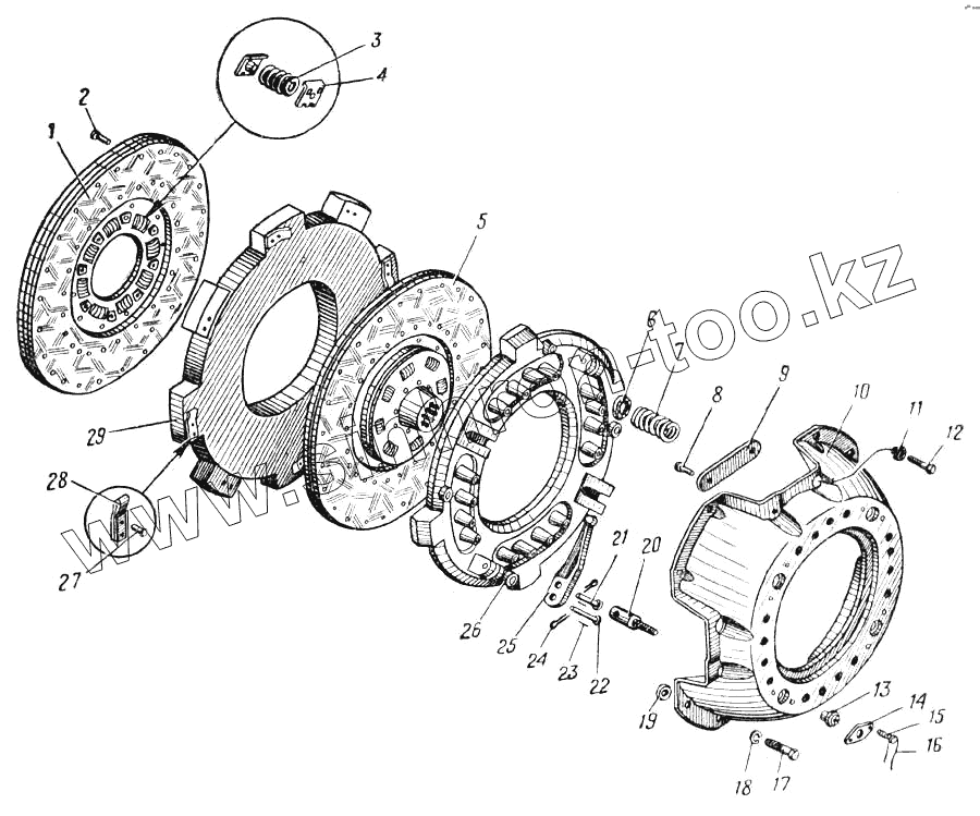Каталог запасных частей к технике: УралАЗ УРАЛ-375. Сцепление (Рис. 38)