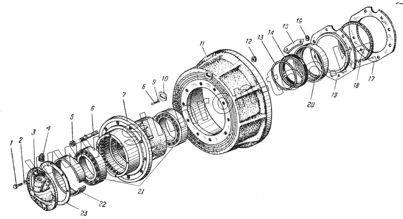 Каталог запасных частей к технике: УралАЗ УРАЛ-375. Ступица колеса (Рис. 77)