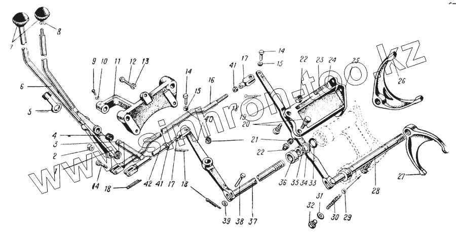 Каталог запасных частей к технике: УралАЗ УРАЛ-375. Управление раздаточной коробкой (Рис. 48)