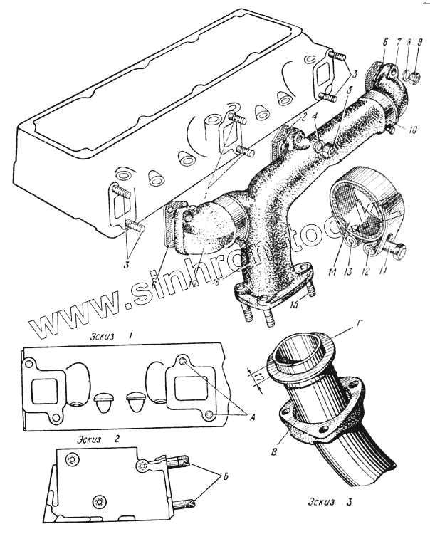 Каталог запасных частей к технике: УралАЗ УРАЛ-375. Выпускной газопровод (Рис. 13)