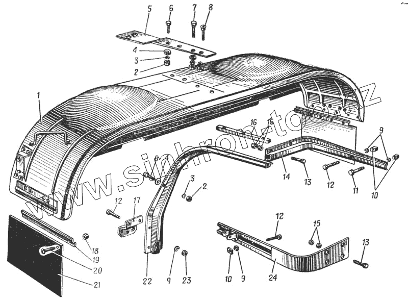 Каталог запасных частей к технике: УралАЗ УРАЛ-375. Заднее крыло (Рис. 153)