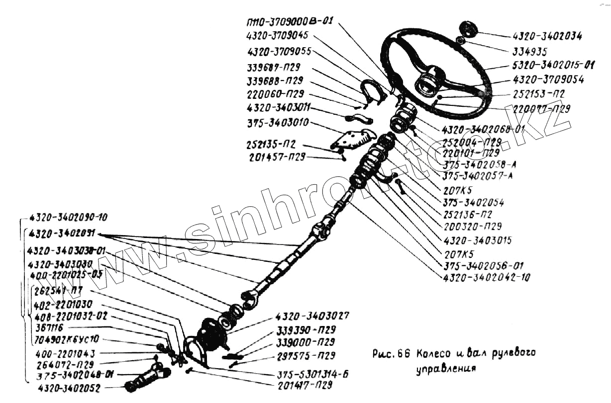 Каталог запасных частей к технике: УралАЗ УРАЛ-43202. Колесо и вал рулевого управления