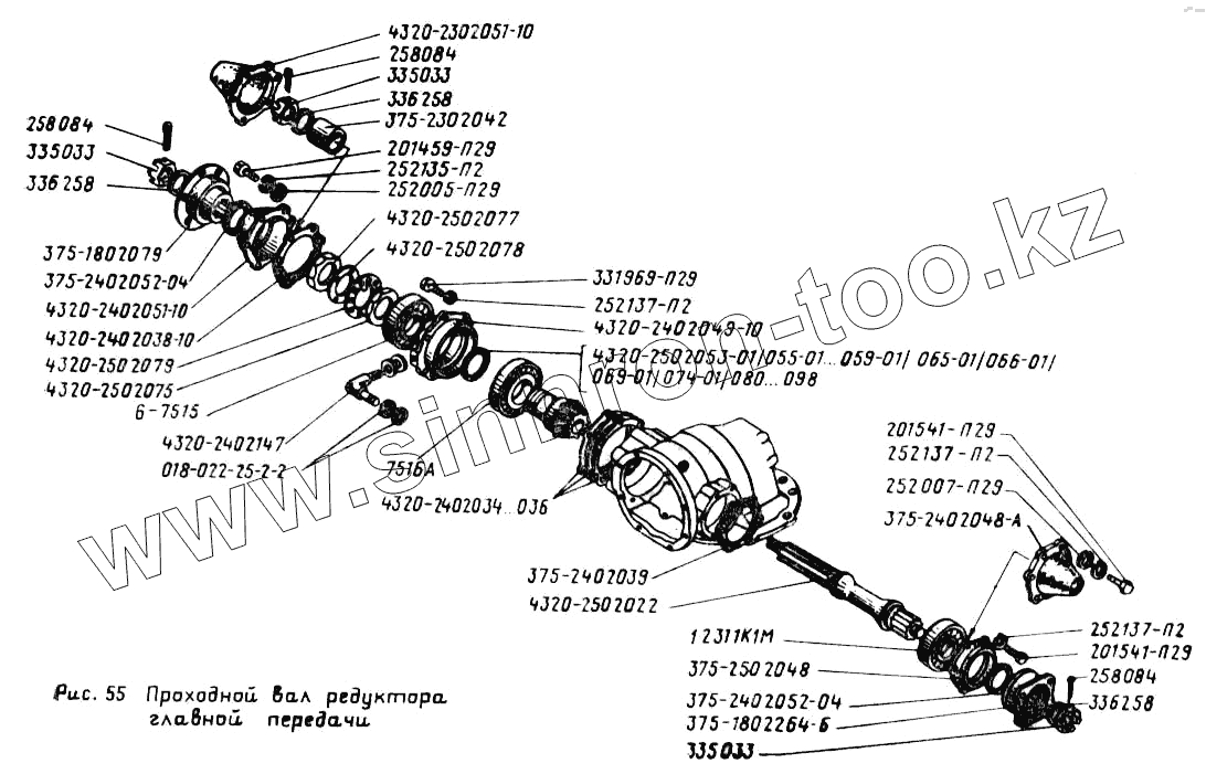 Каталог запасных частей к технике: УралАЗ УРАЛ-43202. Проходной вал редуктора главной передачи