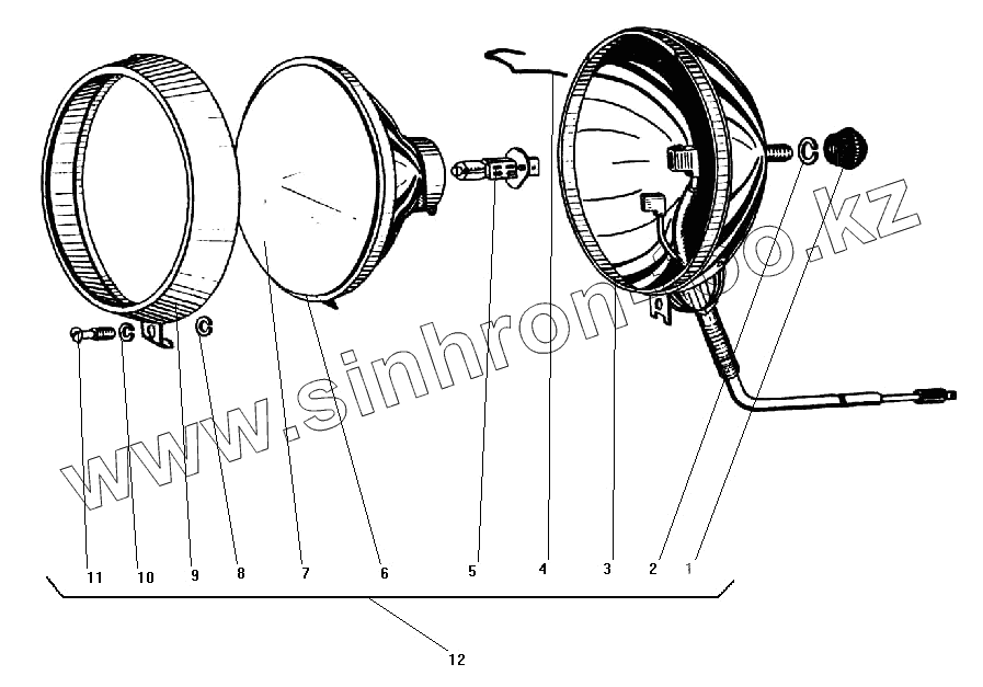 Каталог запасных частей к технике: УралАЗ УРАЛ-43203-10. Фара-прожектор
