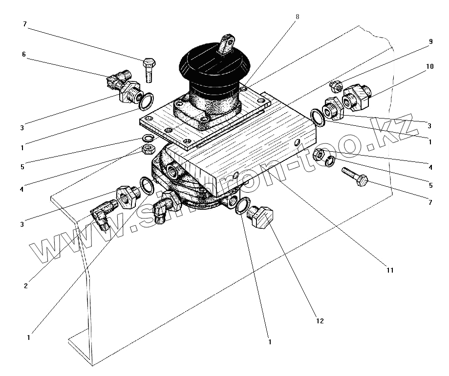 Каталог запасных частей к технике: УралАЗ УРАЛ-43203-10. Установка тормозного крана