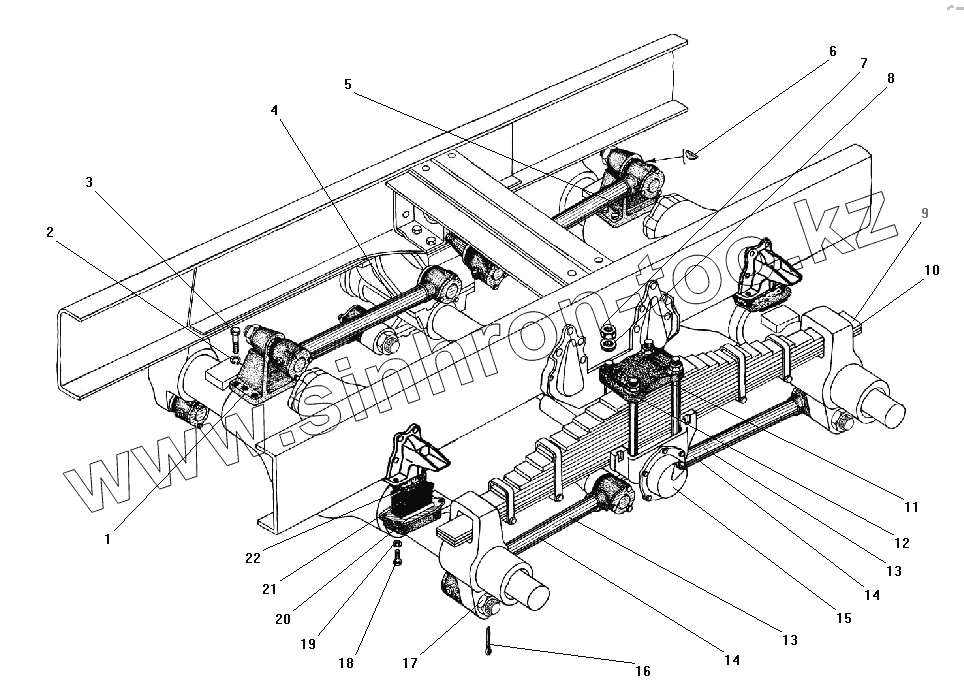 Каталог запасных частей к технике: УралАЗ УРАЛ-43203-10. Задняя балансирная подвеска