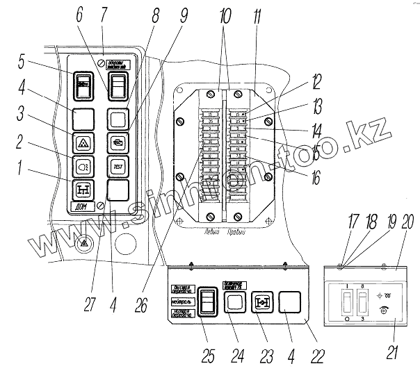 Каталог запасных частей к технике: УралАЗ УРАЛ-43204-1111-70. Щитки выключателей и блоки предохранителей