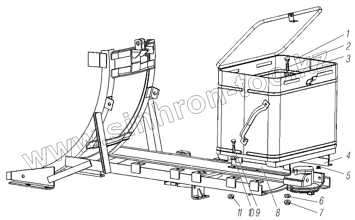 Каталог запасных частей к технике: УралАЗ УРАЛ-43204-1111-70. Установка инструментального ящика