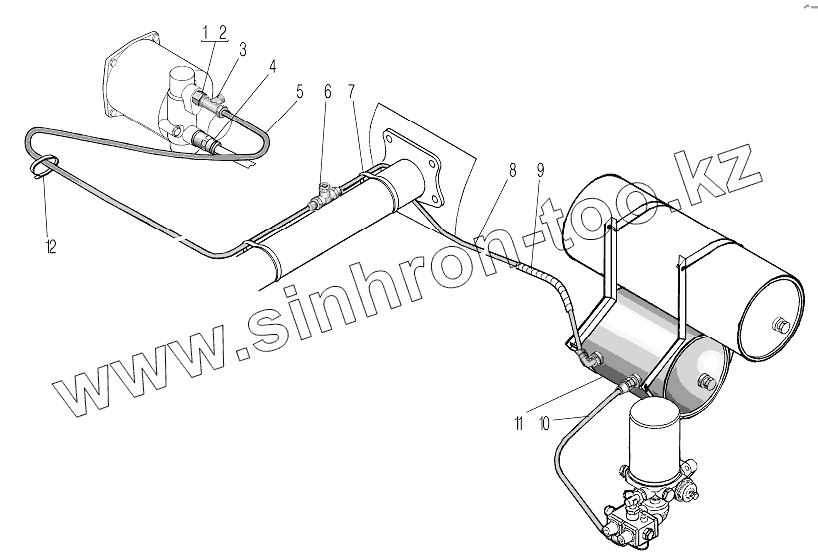 Каталог запасных частей к технике: УралАЗ УРАЛ-43204-1111-70. Установка пневмопривода выключения сцепления