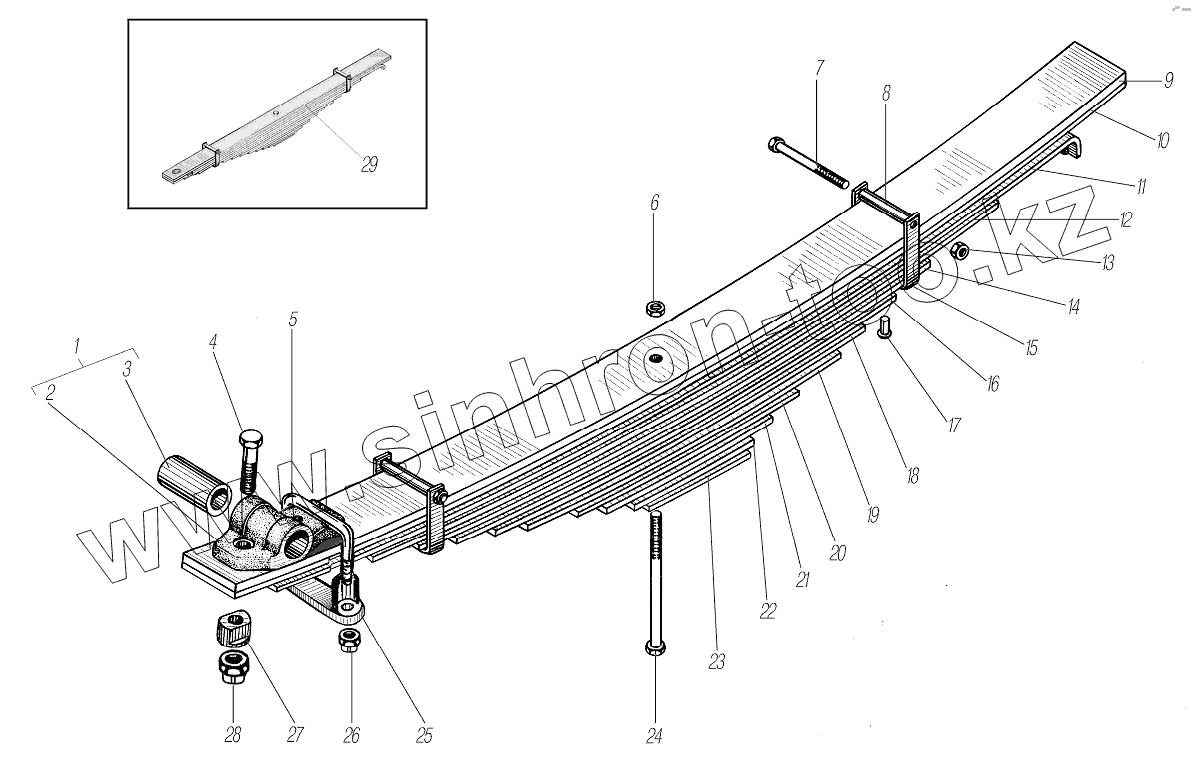 Каталог запасных частей к технике: УралАЗ УРАЛ-43204-1153-70. Передняя рессора