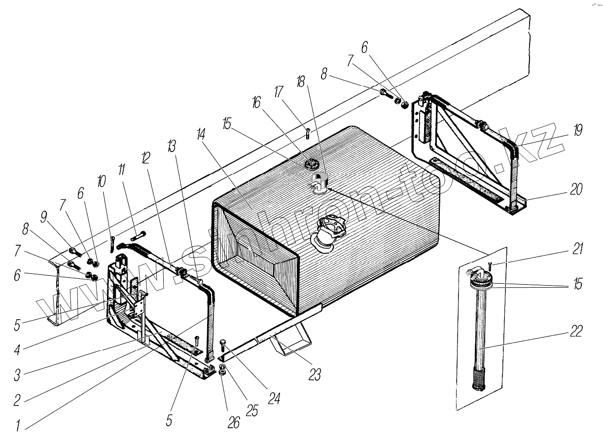 Каталог запасных частей к технике: УралАЗ УРАЛ-43204-1153-70. Топливный бак